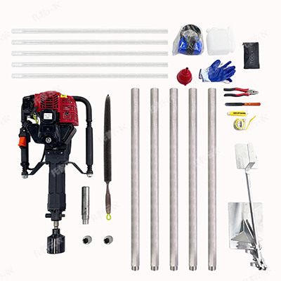 汽油動力發(fā)動機一臺,發(fā)動機工具包一套,標準土壤鉆頭1個、硬質(zhì)土鉆頭1個任選,1米的鉆桿5根(根據(jù)需要另加)、不小于1米的塑料樣品管2根,刮刀、膠錘、老虎鉗、耳機、5M卷尺、手套、清潔刷各1個,專用提取設(shè)備1套、工業(yè)塑料運輸箱1個